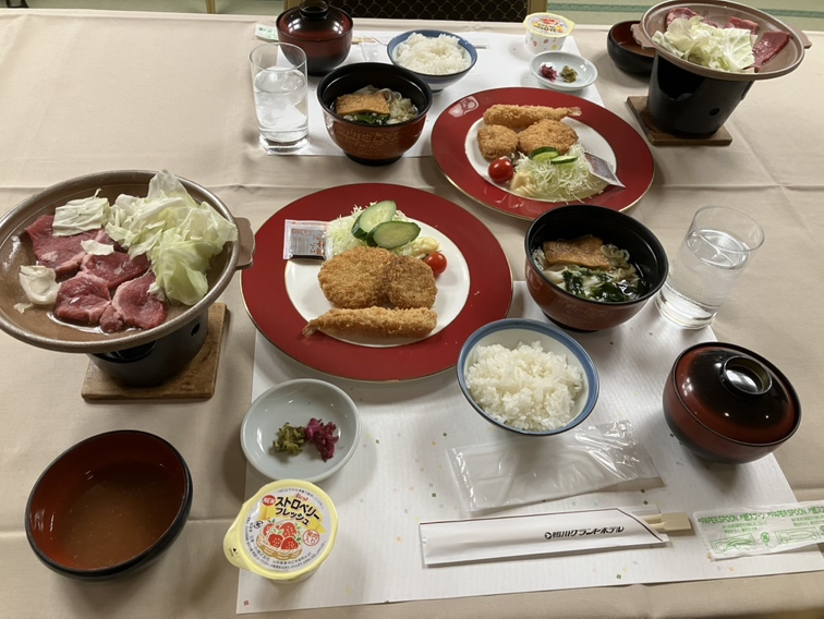 昼食、夕食とおいしいものをたくさん食べてさすがの高校生もみんな満腹でした。